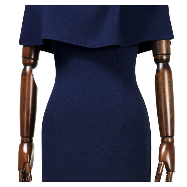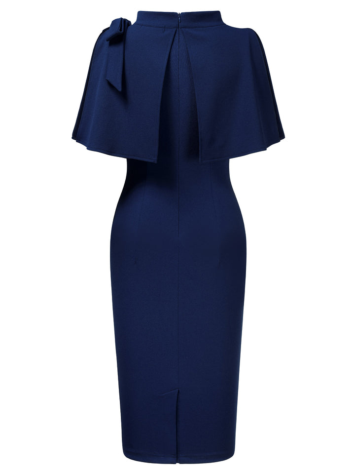 Description: A retro-inspired design that combines elegance and sophistication, perfect for making a statement at your next social event. This dress features a flattering pencil silhouette with a unique batwing cape and bowknot, giving you a polished look ideal for prom, weddings, or church gatherings.